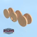I’m designing custom bases for Gunfighter’s Ball, both for figures with slottas and duplicate bases to glue 3D prints to. I’m just getting started, and here are the first ones. I’ll be adding more elborate bases with things like whisky bottles, shell casings, and bits of terrain sculpted onto them.