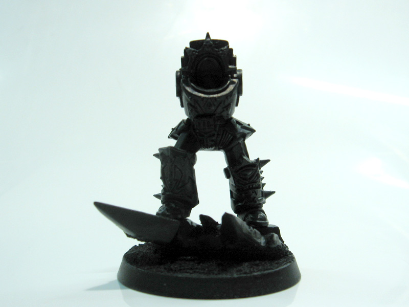 Zum Vergleich zeigen wir noch mit Games Workshop Chaos Black Sprühfarbe grundierte Miniaturen (links) und mit Chaos Black und Pinsel grundierte Miniaturen (rechts).