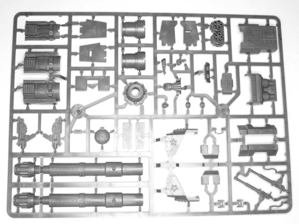 Wie bereits geschrieben, teilen sich Baneblade (inkl. Variante Hellhammer) und Shadowsword (der sich außerdem zu Stormlord, Doomhammer, Banesword, Banehammer und Stormsword zusammenbauen lässt) ein gemeinsames Chassis. Daher unterscheiden sich die Bausätze nur in den beiden Gussrahmen für die Aufbauten.