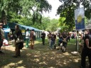 Das Außengelände der FeenCon, rund um die Stadthalle gelegen, ist angenehm grün und bietet je nach Wetterlage die Option zum einen den kleinen „Mittelaltermarkt“ zu besuchen, aber auch die Rollenspielrunde unter den blauen Himmel am Rhein zu verlagern.