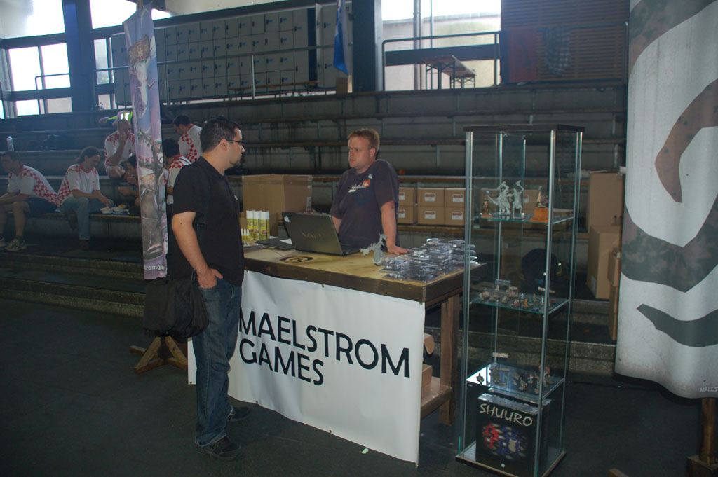 Die Halle bot reichlich Platz für die parallel ausgefochtenen Turniere für Warhammer Fantasy und Warhammer 40.000. Für das leibliche Wohl wurde in der Halle und im direkt angeschlossenem Burger King gesorgt. Maelstrom Games war der Hauptsponsor des Events und hatte Kleber und Schablonen dabei, sowie zwei limitierte Miniaturen die extra für den Event gegossen wurden.