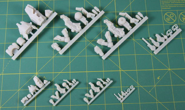 Zusammengebaut ist die 32mm Variante 8 cm hoch, die in 15mm 4 cm hoch. Es gibt 3 Waffenoptionen und der Bausatz wird aus Resin und Zinn bestehen.