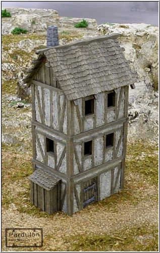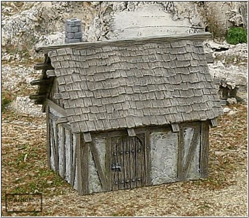 Diese Serie von 28mm-Fantasy-Gebäuden ist vollständig modular ausgelegt – alle Bausätze können unterschiedlich zusammengebaut und durch verschiedene Zubehörsätze erweitert werden. Alle Wände, Dächer und Türen sind beidseitig modelliert, so daß die Innenräume vollständig bespielbar sind.