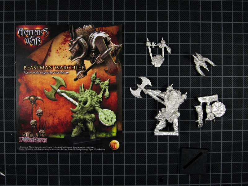 Wir haben für diese Review 4 Blister vorliegen, zwei Zwerge, einen Tiermensch und einen Chaoslord. Viele der Miniaturen gibt es in unterschiedlichen Varianten bzw. mit zusätzlichen Teilen. So verfügt der Chaoslord über einen alternativen Kopf und beim Zwerg gibt es ein Optionales Banner sowie eine Drachenschädeltrophäe.
