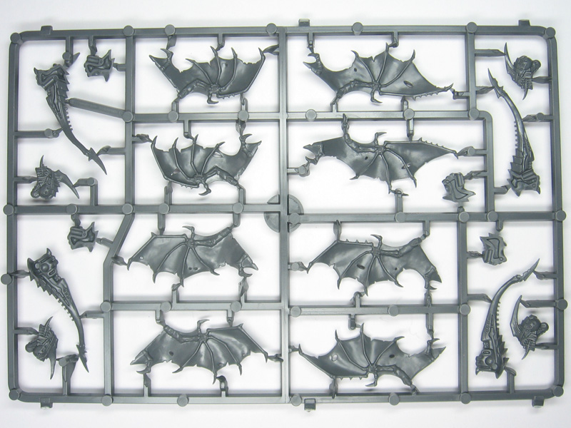Klingt nicht nach viel? Ist es auch nicht. Um genau zu sein, ist es genau das, was man benötigt für einen 10 Mann Trupp. Keine überzähligen Bitz, keine Varianten. Dies liegt wohl primär daran, dass es für die Gargoyles im neuen Tyranidencodex keine Optionen gibt. Aber zumindest ein paar Teile, wie andere Köpfe oder Anbauteile für die Körper wären eine nette Beigabe gewesen.