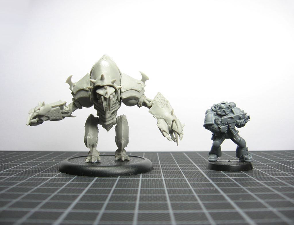 Natürlich darf das obligatorische Vergleichsbild mit einem Space Marine nicht fehlen und der Größenordnung wegen noch eines mit einem Black Reach Cybot. Die neuen Warjacks sind etwas größer als die alten Zinnvarianten.