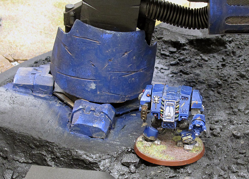 Erschreckend, nicht wahr? Ich habe diesen gigantischen Cybot der Space Marines fotografiert, als ich zu Besuch im Hobbyzentrum Bolton war. Er wurde von Malcolm Watts als Teil seines Abschlussprojektes in der Universität konstruiert („gebastelt“ scheint mir nicht der rechte Ausdruck zu sein) – ich mag mich irren, aber er scheint Warhammer 40.000 für Fortgeschrittene zu studieren. Malcolms Monster-Cybot besitzt die achtfache Größe eines Standard-Cybots und hat vier Monate zur Fertigstellung gebraucht.