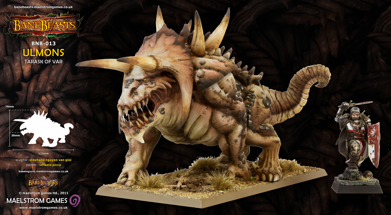 It always seems to be the case that, despite providing actual measurements of each miniature we make, you lot out in wargaming/hobby land are still a little in the dark as to how big our BaneBeasts really are. We know this because whenever we display them anywhere – typically at shows, but often in Maelstrom Games’ physical store (where you can see all the BaneLegions miniatures in the display cabinets) – we hear “Oh, he’s bigger than I thought…!”.