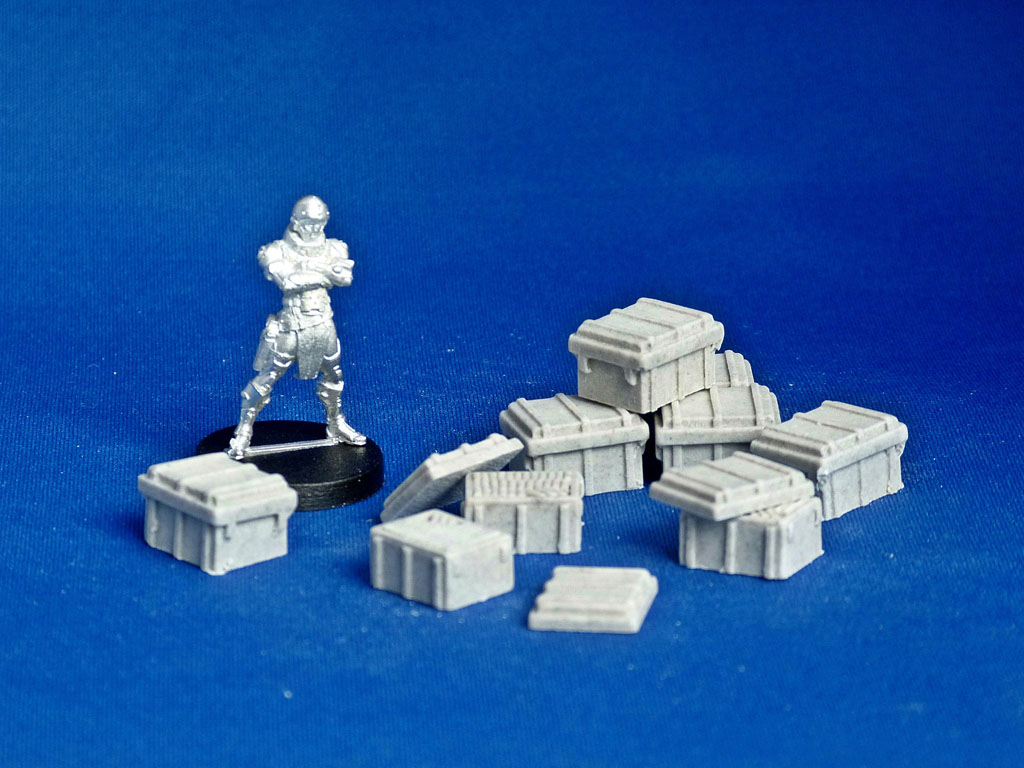 Um die Bestellung abzurunden, habe ich mir noch eine Packung Fässer (10 Stück für 3 GBP/3,50 EUR) und eine Packung Munitionskisten (selbe Menge, selber Preis) bestellt: