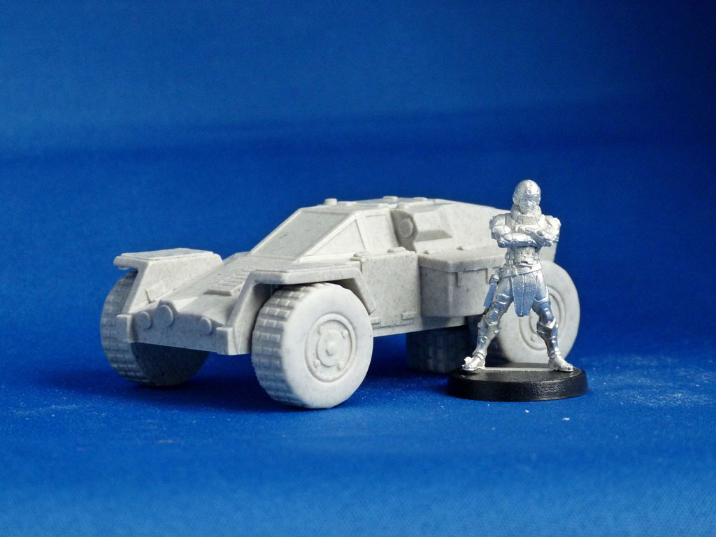 Auch das eckige Design der Fahrzeuge (Mitte 80er Sci-Fi/Battletech) ist sicherlich Geschmackssache und mag auf einige etwas antiquiert wirken. Andererseits folgt Antenocitis Workshop mit seinen Bear und Warthog Modellen einem ähnlichen Ansatz.