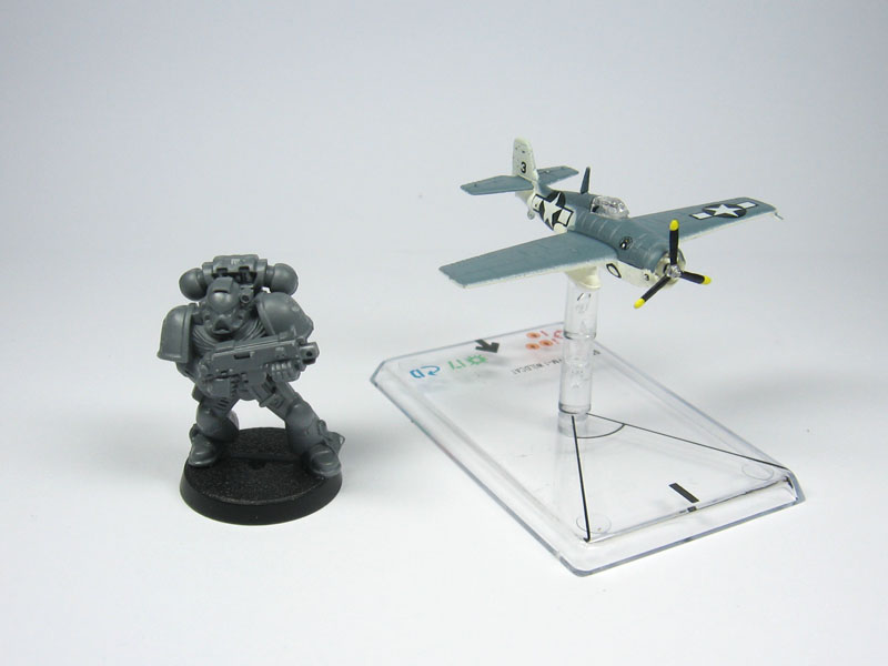 Die Flieger sind im 1:200 Maßstab anstelle des 1:144 Maßstab des 1. Weltkrieg. Das Pre-Paint Niveau der Miniaturen kann sich sehen lassen. Hier Größenvergleiche mit einem Space Marine, einem limitierten Flieger aus dem 1. Weltkrieg und der Vergleich zu einem Dystopian Wars Bomber.