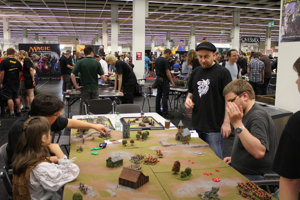 Nun, auf der RPC konnte ich auch Leute, die von GW-Modellen abgeschreckt waren (zu viele Details, zu teuer zum herumprobieren), von Mantic überzeugen. Was die Modelle und die Regeln angeht, ist Kings of War eigentlich das bessere System für den Einstieg. 🙂