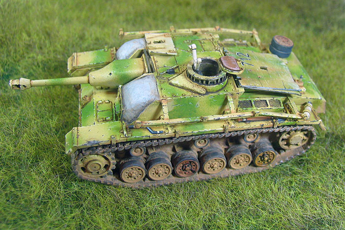 Der Umbau zeigt die Ausf. G des StuG III auf die Variante mit Saukopfblende.