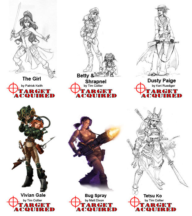 For several years now I have been wanting to launch a new boutique line of miniatures featuring strong female characters. Although I’m using terms like „Bombshell“ and „Babes“ to describe the line, these characters are much more than either of those outdated terms. The concept needed something retro and nostalgic that evoked images of famous paintings like J. Howard Miller’s „We Can Do It“ and Rockwell’s „Rosie the Riveter“.