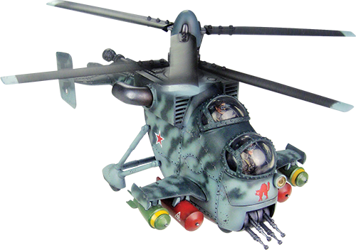 Hm, da muss ich dir jetzt aber widersprechen. Beide scheinen mir vom real existierenden Hind ( http://jafrianews.files.wordpress.com/2011/10/mi24-hind-helicopter.jpg ) inspiriert. Zwischen dem B-Copter und dem Ding hier gibt es viel zu viele Detail-Unterschiede.
