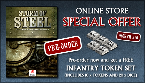 This offer is available exclusively to those that pre-order the Storm of Steel Campaign Guide from the Spartan Games Online Store. The Storm of Steel Campaign Guide will be shipping fromOctober 17th so be sure to get your orders in quickly. Place your order by Wednesday October 17th and we will automatically send you the Infantry Token Set absolutely FREE.