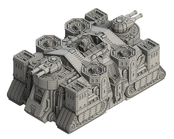 The Liege Class Land Ship is more akin to a giant steam-powered fortress than the Land Ships of the other Great Powers. Although less mobile than its contempories, the Liege more than compensates with the considerable firepower it can unleash from its pair of turrets and gargantuan rotary mortar.The Liege Class is the pinnacle of flexible defensive strategy. It is heavily armoured against incoming fire, and has multiple Ack Ack batteries to repulse aerial aggression. The Liege is even designed to embed itself into the earth once it has found an optimal position. With its ground clamps firmly in place, the Liege becomes a stable, unshakeable firing platform, allowing even greater accuracy with its formidable weapons.