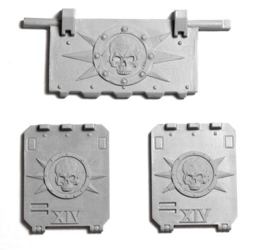 Und als wenn das zusammen mit den Sachen die wir bereits in den letzten Tagen gezeigt haben, nicht genug wäre, gibt es noch Upgrades für Fahrzeuge und Infanterie in Form neuer Türensets (erhältlich für Rhinos, Mk II und reguläre Land Raider) sowie Kommandobitz und Schulterpanzer.