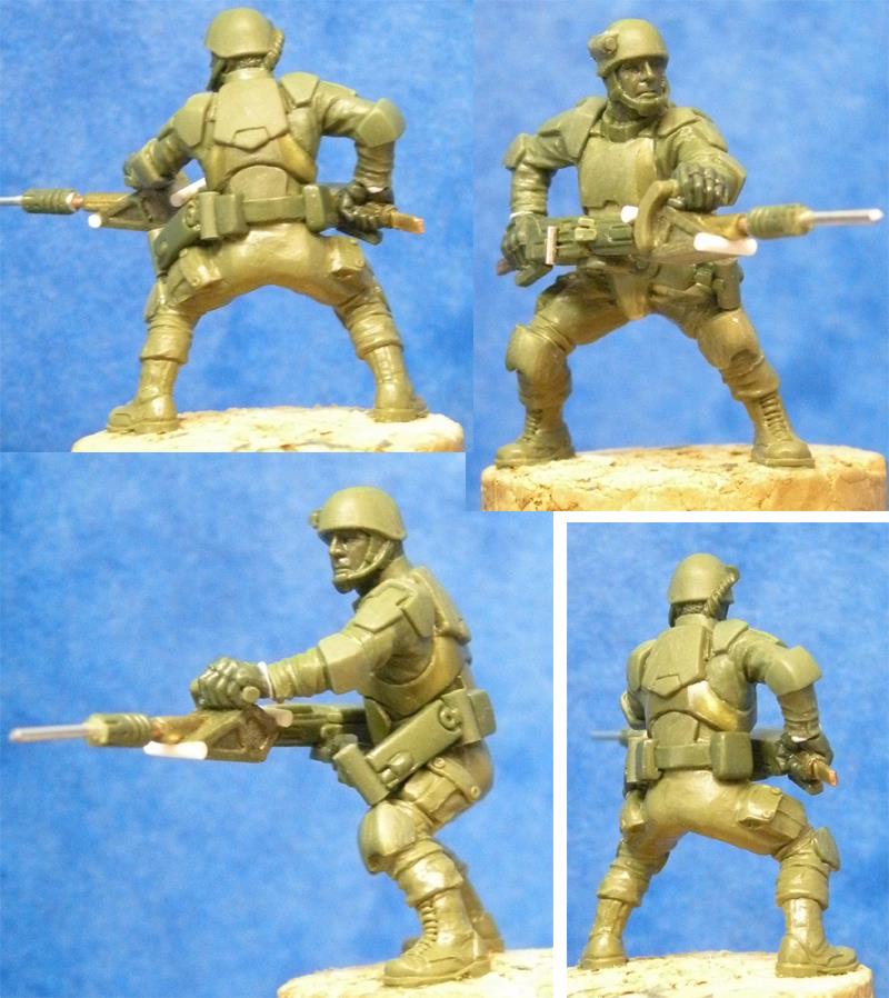 Auf Facebook zeigt Kev von Hasslefree Miniatures seine neueste Kreation: einen männlichen Soldaten mit Smart Gun.