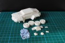 Beim Auspacken erlebten wir dann eine (positive) Überraschung: Die Fahrzeugkörper sind aus einem massiven Stück weißen Resins gegossen. Aufgrund der Beschreibung „mehrteiliger Bausatz“ hatten wir etwas anderes erwartet. Aber das „Mehrteilig“ bezieht sich eher auf die dazugehörigen Reifen und Bewaffnung als auf den Fahrzeugkörper. Am der Fahrzeugunterseite lassen sich noch die Gussnähte erkennen, an denen die Formhälften aneinandergedrückt wurden. Diese Reste lassen sich problemlos mit einer Feile und einem Bastelmesser entfernen, fallen aber auch ansonsten nicht weiter auf, da sie sich auf den Unterseiten befinden. Bei den Zubehörteilen für den Cruiser gibt es an den Dachluken einige überraschend große Häutchen aus Resin die entfernt werden müssen. Dies alles fällt aber noch in den Bereich des Normalen. Positiv aufgefallen ist uns, dass die Kanten an beiden Modellen scharf gegossen sind und sich keine Luftblässchen auffinden lassen. Bei der Qualität gibt es also überhaupt nichts zu beanstanden. Nach einem einem kurzen Bad in Seifenlauge um das Trennmittel und eventuellen Resinstaub zu entfernen, kann der Zusammenbau losgehen.