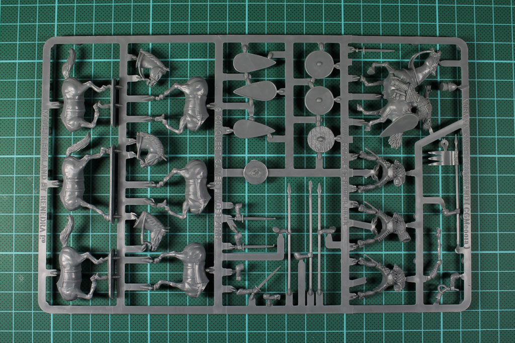 Die Gussrahmen decken Reiter und ihre Pferde ab, es sind 2 Varianten enthalten. Der Standard Gussrahmen mit 3 Pferden und 4 Reitern, sowie die Variante des Kommandos mit passenden Bitz sowie einem berittenem Verlust.