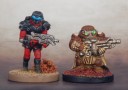 - Rechts: Mantic Corporation Ranger mit Pig Iron Kopf