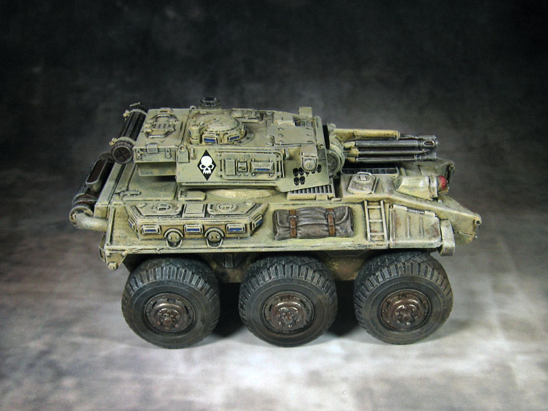 Nicht nur dem (Größen-)Vergleich mit Games Workshop kann der 6×6 gelassen entgegen Die Größe ist in der Klasse des Rhino-Chassis, weshalb der RAV sich sicherlich nicht nur als Alternative zu Chimäre und Co gut machen würde, sondern sogar dem Predator gefährlich werden könnte.