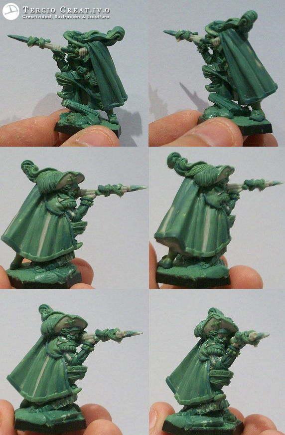 Komplett in Grün ist es etwas schwer, den Konturen zu folgen. Bemalt wird man wohl besser erkennen, daß die Figur sehr gut modelliert wurde.