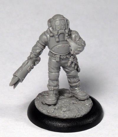 These are all resin casting of figures that are in production. The Hunter-Killer Mech Construct for the Ancients of Atalan force will be produced in resin while the others are in metal. The three smaller minis are already in production and getting packaged up for shipment to DeepWars backers.