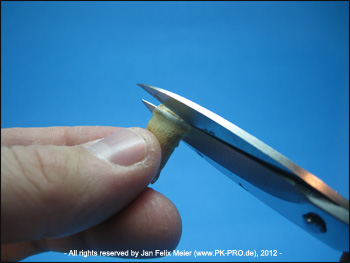 Schritt 1: Wenn nötig, die einzelnen Sandsäcke von überschüssigem Randmaterial befreiten. Achtung, nicht zu weit abschneiden!