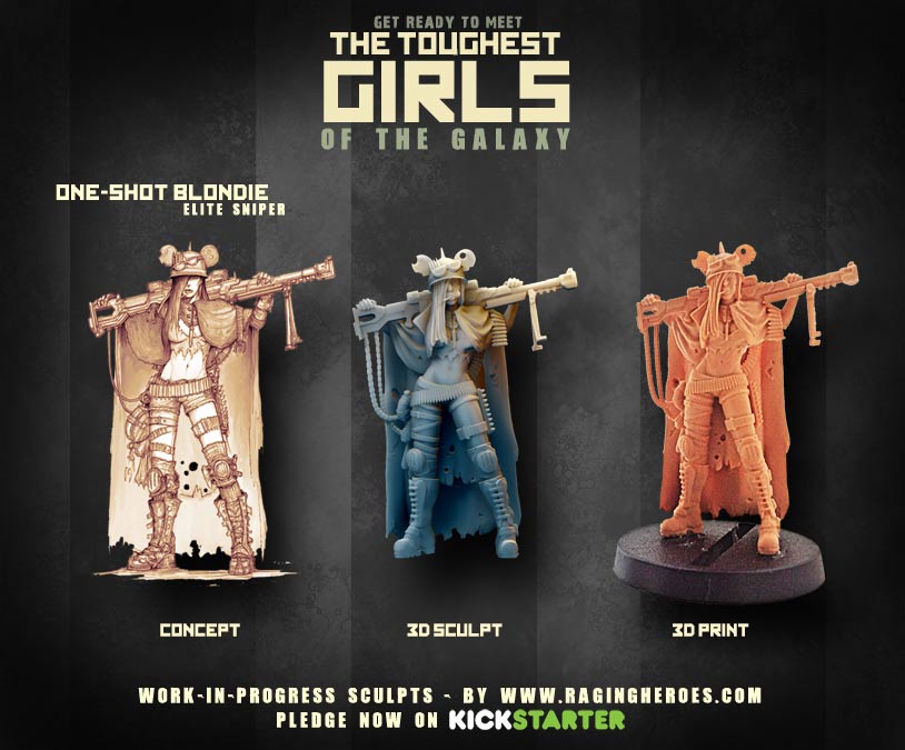 Der Raging Heroes Kickstarter geht weiter und es gibt erstmals alle Schritte vom Artwork zum fertigen 3D-Print zu bestaunen.
