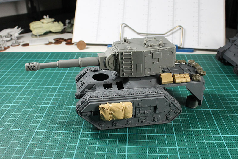 Der Umbau ging leichter von der Hand als ich dachte (das richtige Werkzeug ist wichtig, wie u.a. eine Handsäge). Mit weiteren Bitz wie der der Kettenabdeckung, der alten Valhallanischen Chimärenbesatzung aus Zinn und etwas „Krempel“ dürfte dem Modell noch etwas Leben eingehaucht werden.