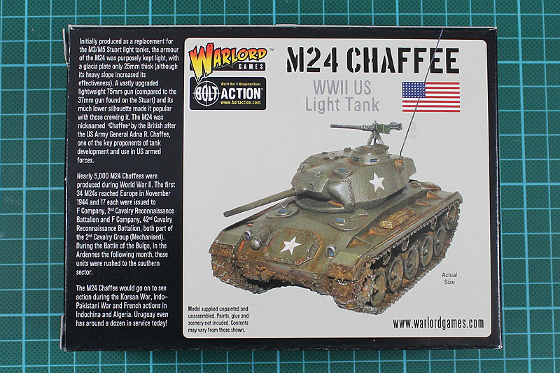 Bolt Action bietet den M24 Chaffee als Resin- Zinn Bausatz im 28mm / 1:56 Maßstab an. Der Bausatz kostet 20 GBP.