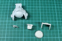 Bereinigt sehen die Einzelteile nun so aus. Die Gussqualität des Zinns ist okay, insgesamt wirken manche Teile etwas detailarm und auch die Genauigkeit erster Passproben lässt nicht unbedingt allzuviel erhoffen.