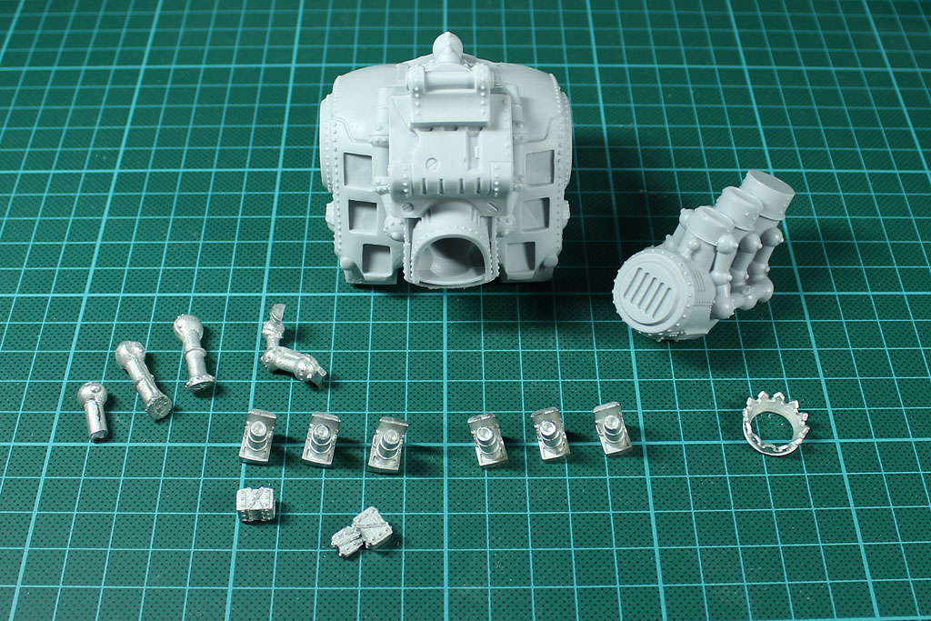 Ja, der Zusammenbau der Kolosse geht eigentlich relativ zügig, sobald man einmal alle Teile soweit gereinigt und vorbereitet hat. Die Klebestellen sind ja meist recht großzügig bemessen. Insgesamt ist das Modellbautechnisch kein exorbitant hoher Anspruch, da hat man bei den meisten großen Plastikbausätzen (GW Baneblade, Ork Stampfa und Co.) deutlich mehr zu tun…