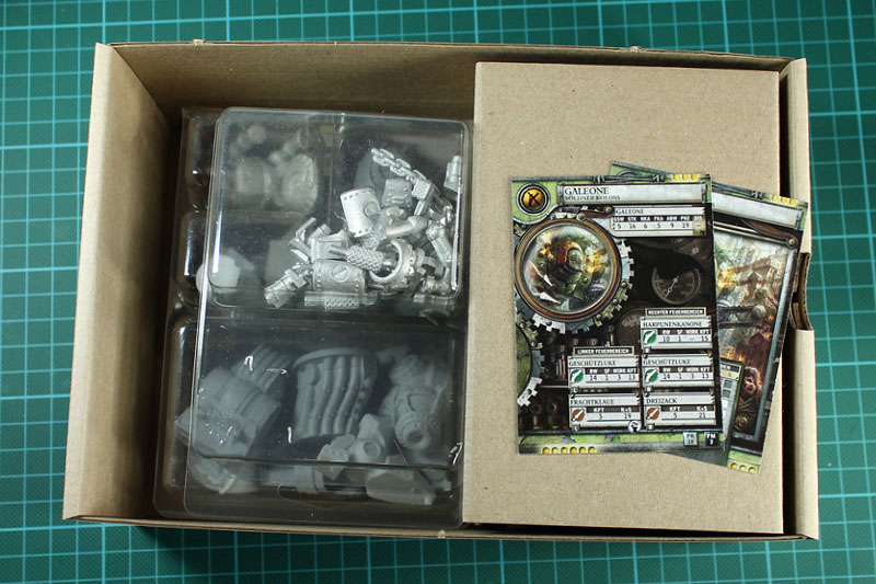 Der Mercenary Galleon Colossal kommt in einer großen Box, wie die Battle Engines und anderen Colossals. Preislich schlägt der Galleon mit 135 Euro zu buche, ein ordentlicher Berg Geld für einen Berg Resin und Zinn, wie wir beim auspacken erneut feststellten.