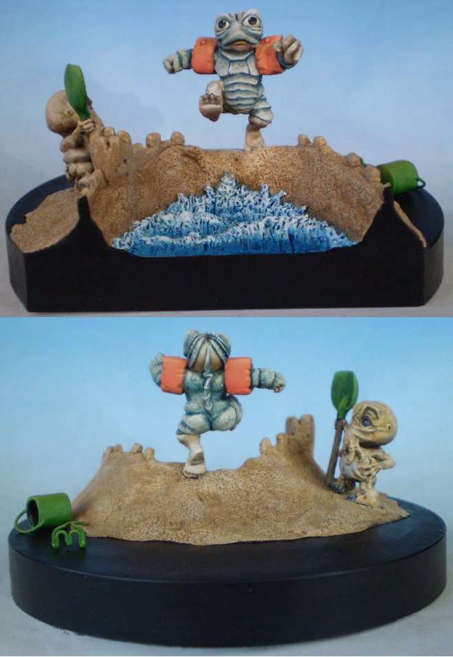 Weiter geht es mit Walter Proof und Tulu am Strand, bemalt von Requyem. Dazu gibt es umgebauten Meerestroll von Tovar. Den Abschluss bildet ein Treffen zwischen Seeelfen und einer Meerjungfrau, bemalt von Sproket.