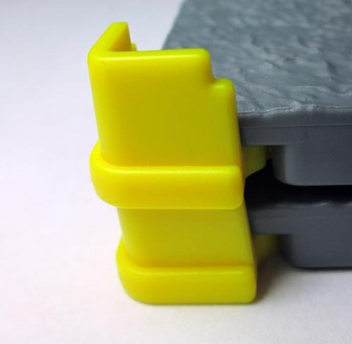 Secret Waepon zeigen auch noch nützliches Zubehör. Zum einen halbierte Clips für die Spielfeldränder zum anderen Abstandhalter, damit beim Stapeln die Platten nicht aneinander schrabbeln.