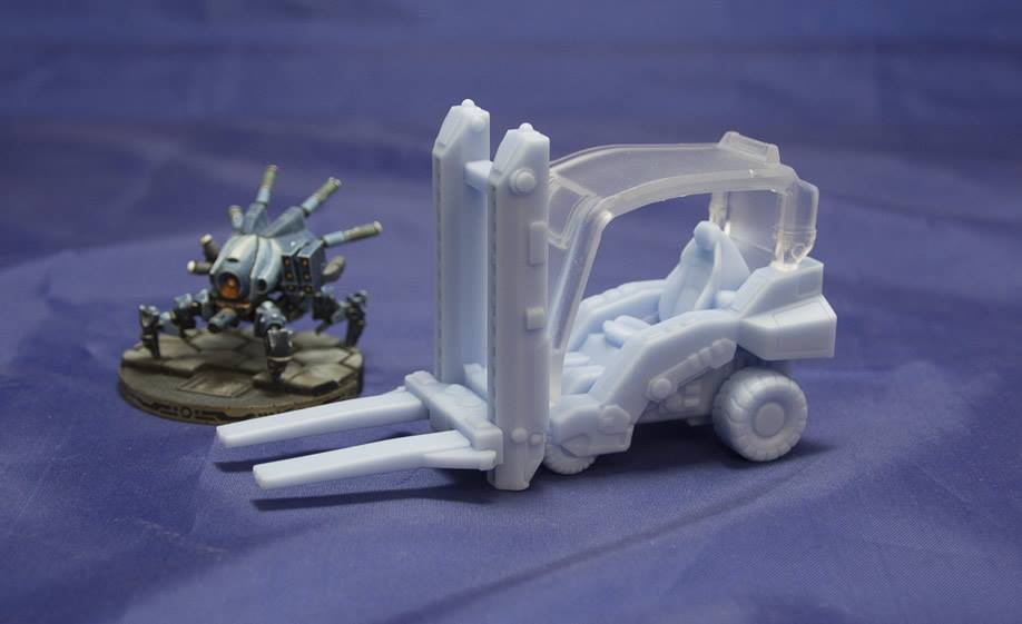 Deren Gabelstapler sind verglcihen damit entweder zu klein (der aus der Serie mit den Paletten und Kisten direkt dabei) oder sehr massig (die Einzelstapler). dafür geben die Größeren halt vernünftig Deckung, weil der hier schaut zwar schick aus aber alles außer Infanterie hats da schon schwer, und selbst die kriegen keine Volldeckung.