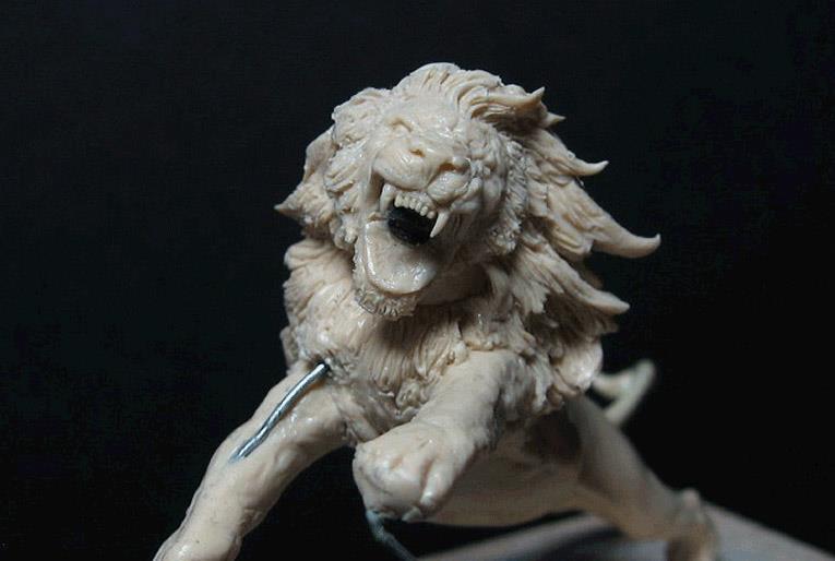 Also den Löwenkopf finde ich wunderbar gelungen. Wie die die Miniatur standsicher bekommen wollen, muss man aber noch sehen. Eventuell müsste man ein elliptisches Base nehmen oder eines, auf dem dann eine Zinneinlage für zusätzliches Gewicht sorgt.