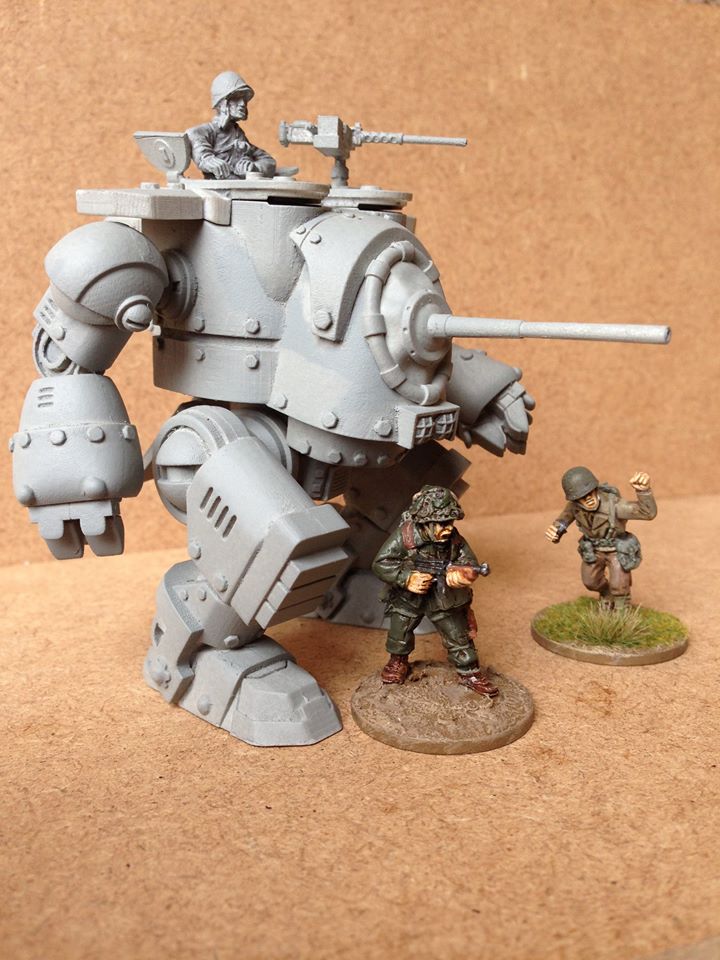 And even better news, the first sample is back from the shop floor for the 28mm US Grizzly Medium Walker. We’re really impressed with the quality of the cast, its first rate. We’ve started production and will have some with us at Salute. Shown here with a Warlord Games US crewman and alongside a plastic US infantryman and Bolt Action US Paratrooper.