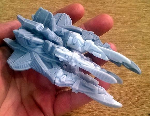 Quick pictures of the new Ba’Kash Battle Carrier. We’re most pleased to have got the Ba’Kash into resin and looking forward to this fleet arriving back from the painters – just in time to ship the new fleets out!