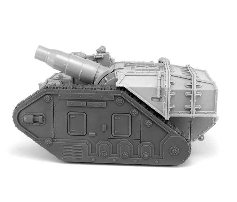 Many Solar Auxilia Cohorts maintain their own mobile artillery batteries, favouring a class ideally suited to their particular battle doctrines. Among the most common types used by the Solar Auxilia is their variant of the Basilisk, which is substantially different to those utilised in the wider Imperial Army and other fighting forces of the galaxy-spanning Imperium.