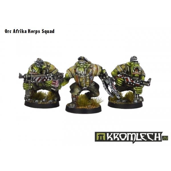 WWII-esque Orks in deutschen Wehrmachtsuniformen sind ja schon recht bekannt von Kromlech. Hier sind es jetzt eben die kurzärmligen Afrika-Hemden, die an den Grünhäuten dargestellt werden. Auf jeden Fall immer wieder amüsant zu sehen, wie die die deutschen Waffen (Mauser, MP40, MG42) in der Orkversion gestaltet haben. Mir persönlich ist das etwas zu viel der Anleihen, aber wem es gefällt…