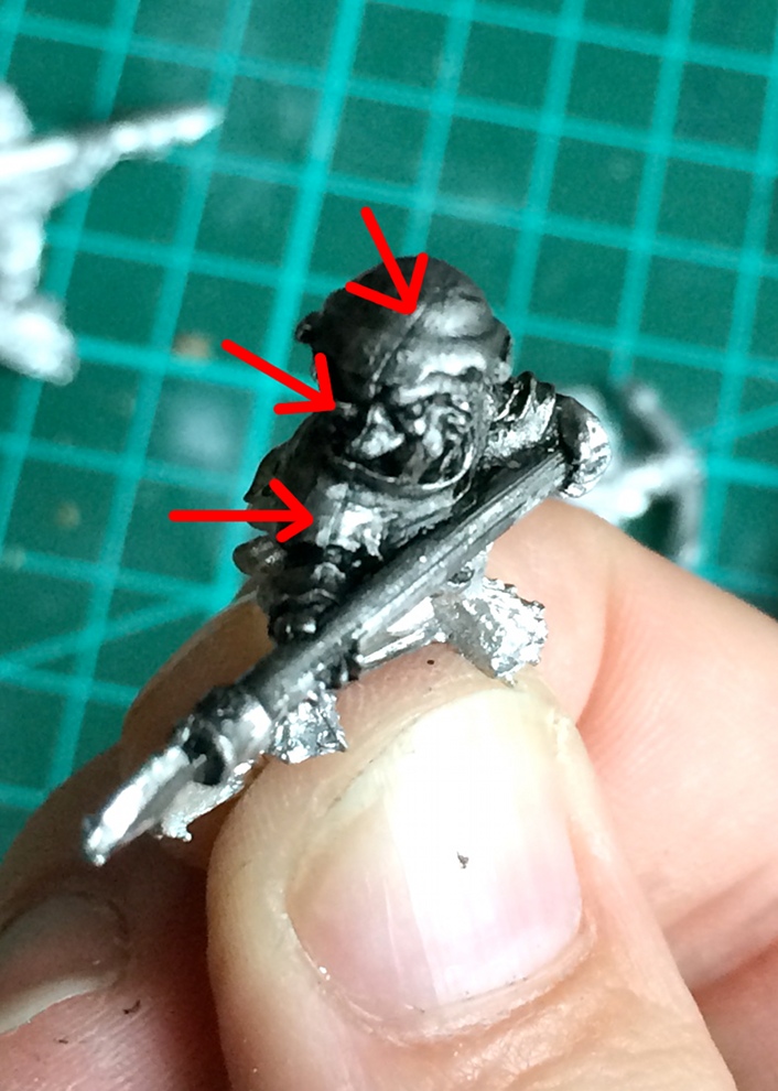 Bei den Halblingen verläuft bei den meisten der Modelle der Gußgrat genau durchs Gesicht was Ich etwas doof finde, aber aufgrund der Kopfposition der meisten Halblinge (Kopf zur Seite gerichtet) ist die Gußgratposition nicht vermeidbar wenn man eine normale Form aus zwei Teilen benutzt.