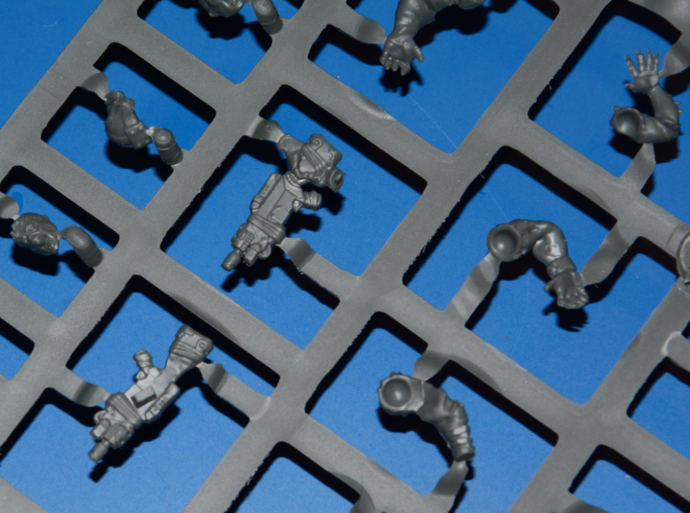 Mit ihrem ersten Sci-Fi-Hartplastikgussrahmen verpassen Mantic Games den großen Wurf knapp. Die Gestaltung der Modelle und die Posenvielfalt, die der kleine Gussrahmen ermöglicht, sind beachtlich, auch die Tatsache, dass beispielsweise zwei weibliche Oberkörper vertreten sind (einer mit Rüstung und einer ohne), fällt positiv auf. Der Zusammenbau geht flott von der Hand, die Gussgrate sind nur schwach ausgeprägt und die Modelle kommen endlich ohne die Mantic-typischen Base-Scheiben daher, so dass sie problemlos auf jede Base geklebt werden können.