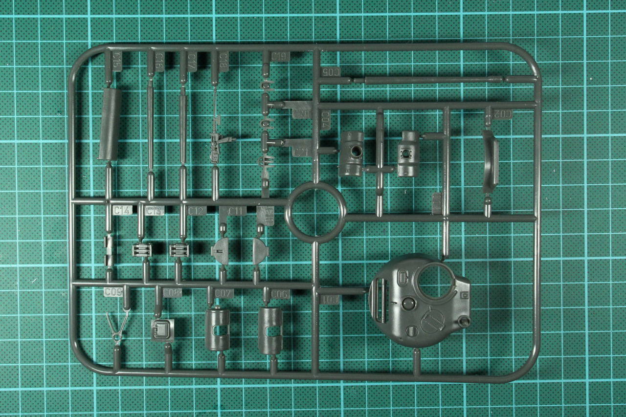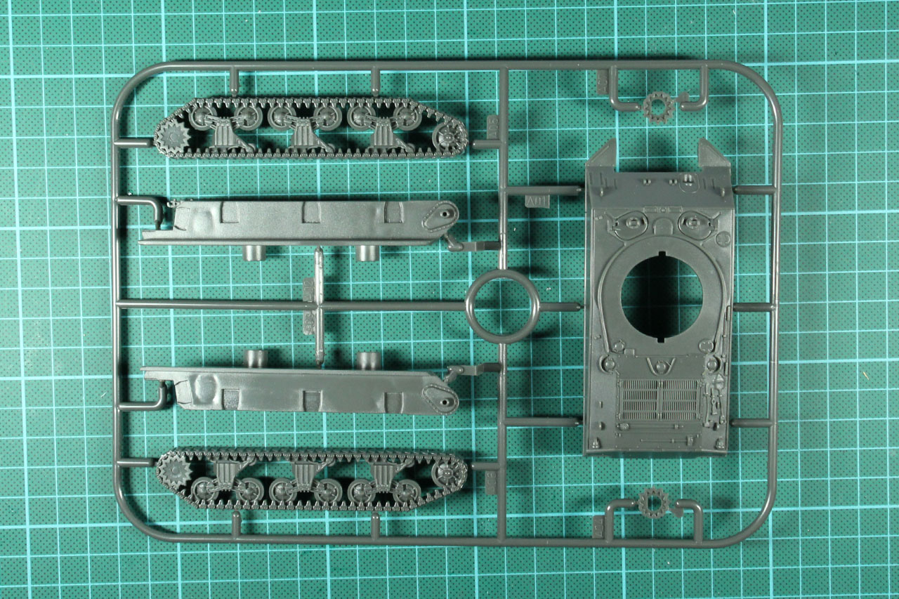 Im Sherman Bausatz sind zwei unterschiedliche Türme (75mm und 76mm) und drei Geschütze (75mm, 76mm und 105mm) enthalten. Der Kunststoff fühlt sich allerdings recht glatt an, weshalb es Sinn machen dürfte, die Gussrahmen vor der Bearbeitung mit lauwarmen Seifenwasser abzuwaschen.