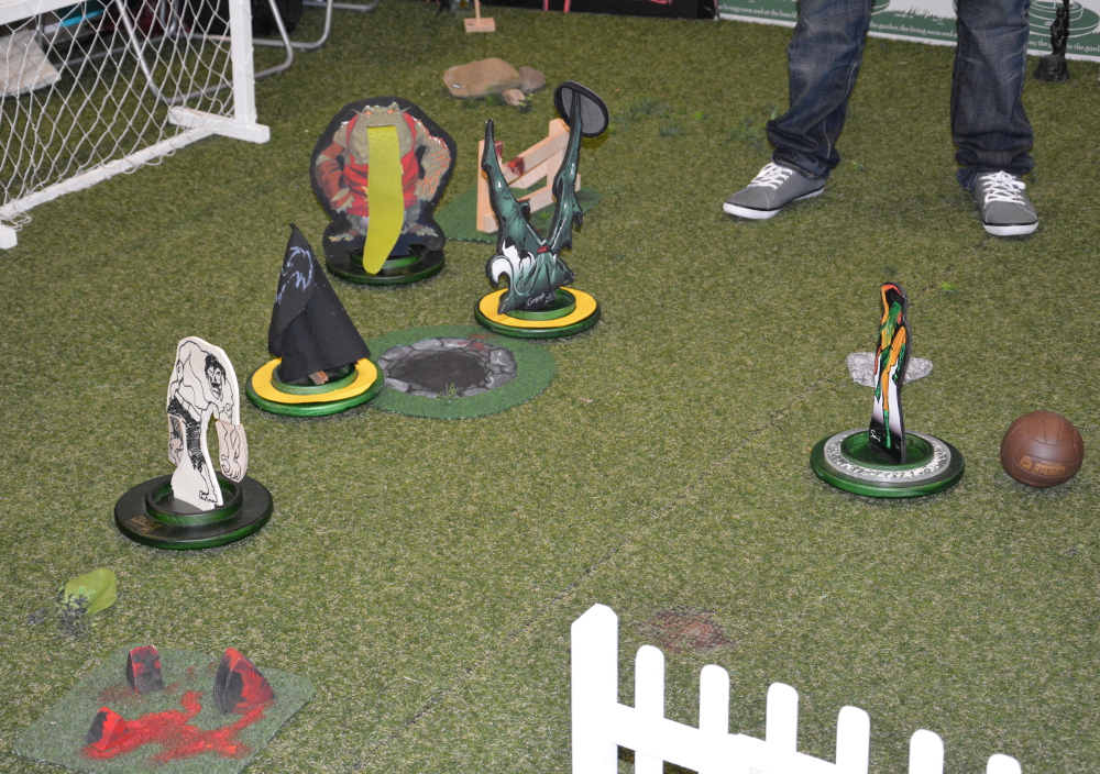 Warmachine war mit verschiedenen Demotischen une einer wahrlich gewaltigen Schlachtenszene vertreten. Man beachte die umfunktionierte WoW-Actionfigur!