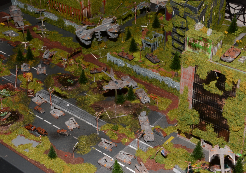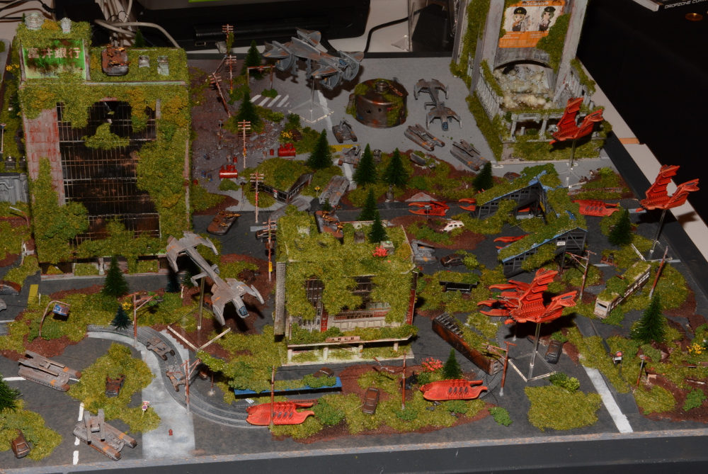 Unser Kollege Burkhard hatte sich noch in der Woche vor der Tactica die Nächte um die Ohren geschlagen, um der Dioramaplatte für Dropzone Commander den letzten Schliff zu verleihen: