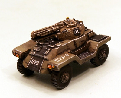 The Adder is the standard light ground vehicle for the Muster. Used for a variety of puposes and in many variants it typically has a crew of two and is capable of dealing with low level threats. There are many IAF036 variants and also the IAF038 Smashed Adder which depicts your hover Adder on a bad day an excellent piece with a variety of uses.